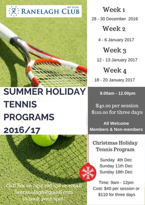 Holiday programs are a great way to improve your tennis skills or introduce you to the game of tennis in a fun and relaxed envirnoment.